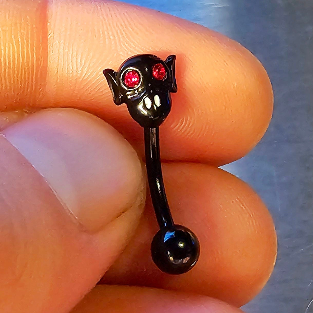 Entfesseln Sie Ihren inneren Vampir mit unserem gebogenen Vampir-Barbell aus schwarzem Edelstahl. Das elegante schwarze Design verleiht Ihrem Stil einen Hauch von Extravaganz. Hergestellt aus robustem Edelstahl ist dieser Barbell das perfekte Accessoire für jedes Piercing. Setzen Sie mit jedem Tragen ein starkes Statement!