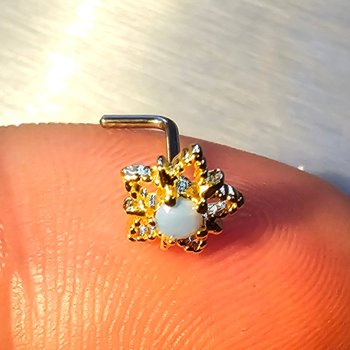 Verwandeln Sie Ihren Look mit unserem Nasenstecker in L-Form mit blauem Stern. Setzen Sie mit dem wunderschönen blauen Stein und dem einzigartigen Sterndesign einen Farbtupfer und setzen Sie neue Akzente. Heben Sie sich von der Masse ab und fühlen Sie sich selbstbewusst mit diesem atemberaubenden Accessoire!