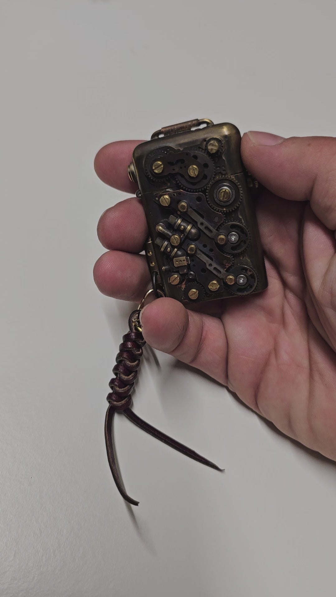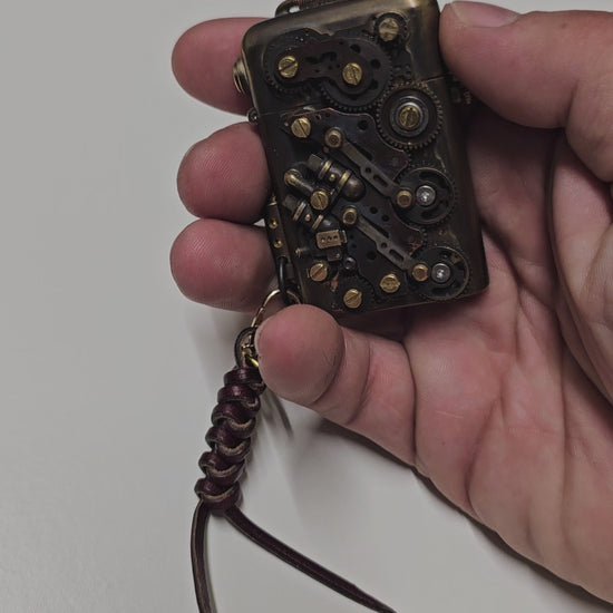 Ignite your style with this Mechanical Engine Steampunk Brass Flip Press Lighter. Crafted in cool brass with a vintage flip-top design, it combines old-world charm and modern flair. Perfect for adding a quirky touch to your collection or gifting a unique, personalised treasure that sparks joy every time you use it.