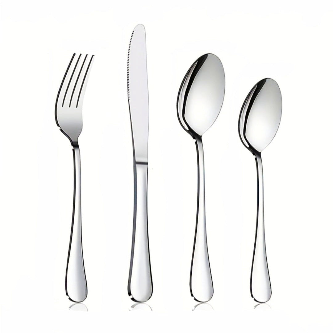 Silbernes 4-teiliges Besteckset aus blankem Edelstahl