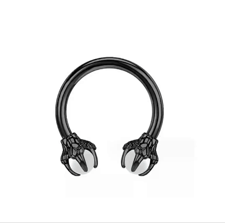 Anneaux de septum en fer à cheval noir avec griffes de dragon