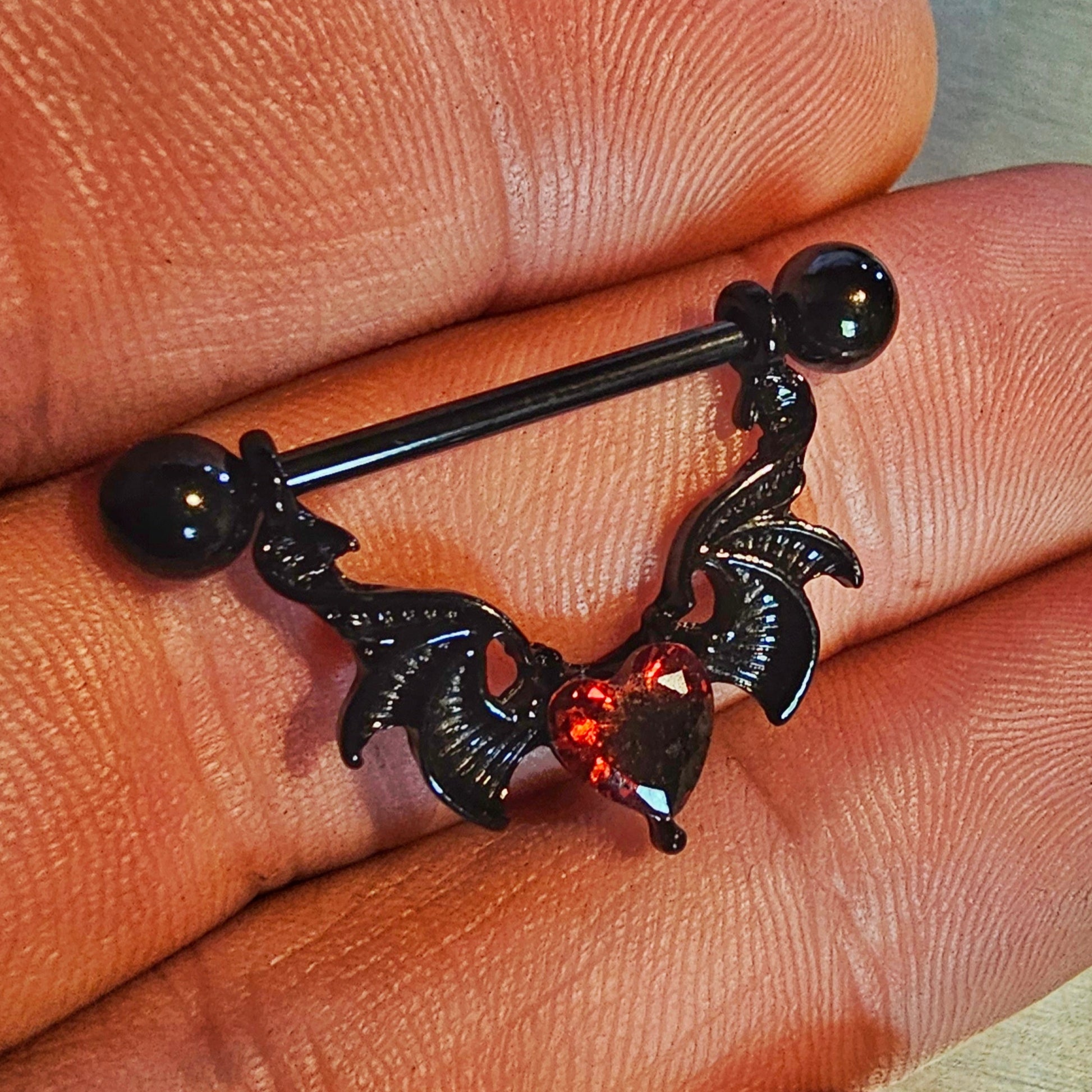 Sublimez votre collection de bijoux de corps avec notre superbe piercing pour téton en forme de cœur ailé. Fabriqué en acier chirurgical 14G de qualité supérieure pour un confort et une stabilité optimaux, ce bijou captivant arbore de délicates ailes encadrant un cœur central. Affirmez votre style avec audace et symbolisme romantique. Parfait pour exprimer votre personnalité unique et ajouter une touche d'élégance à votre intimité.