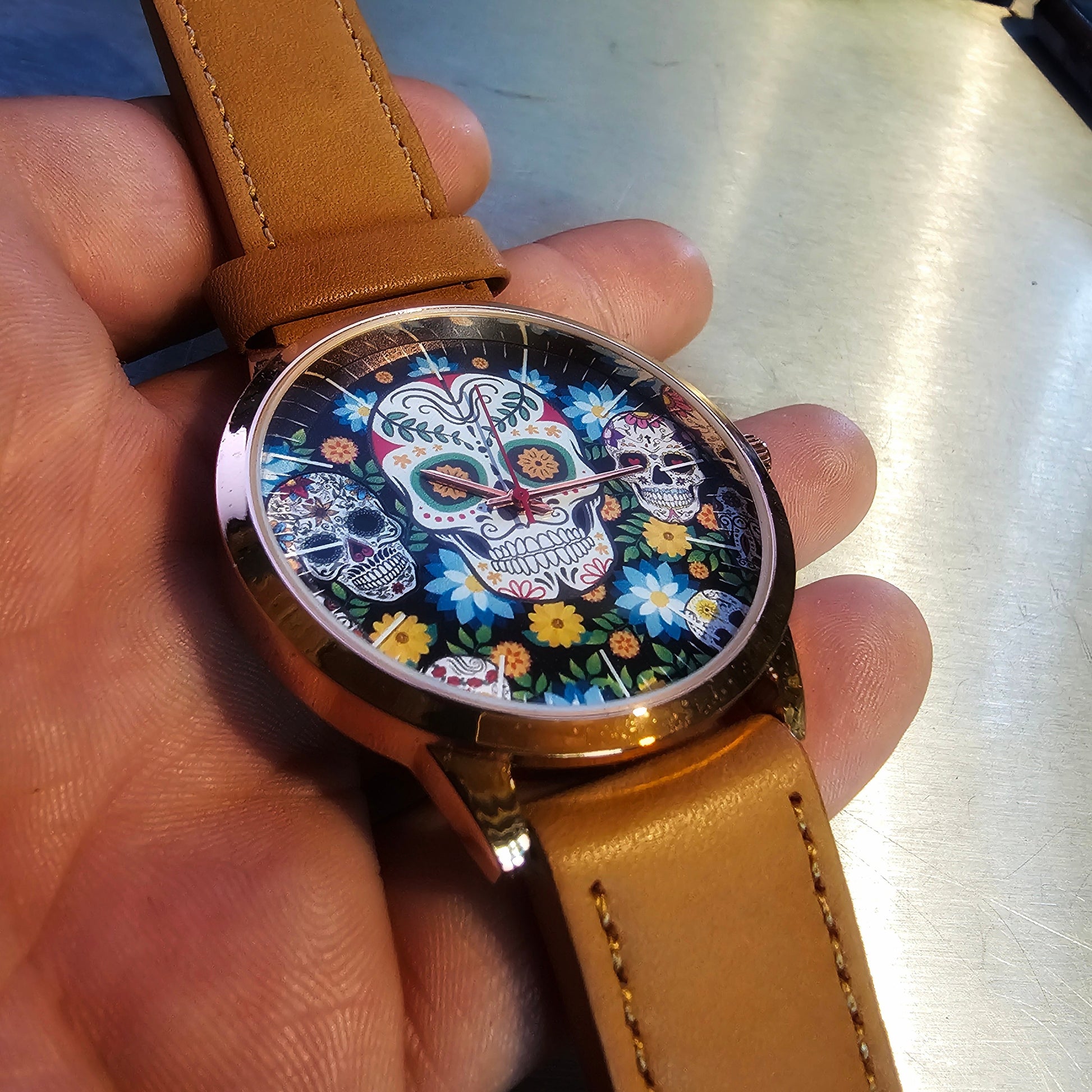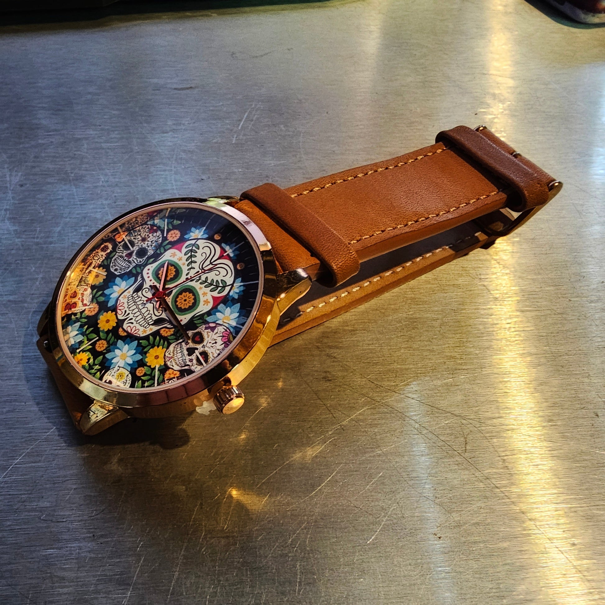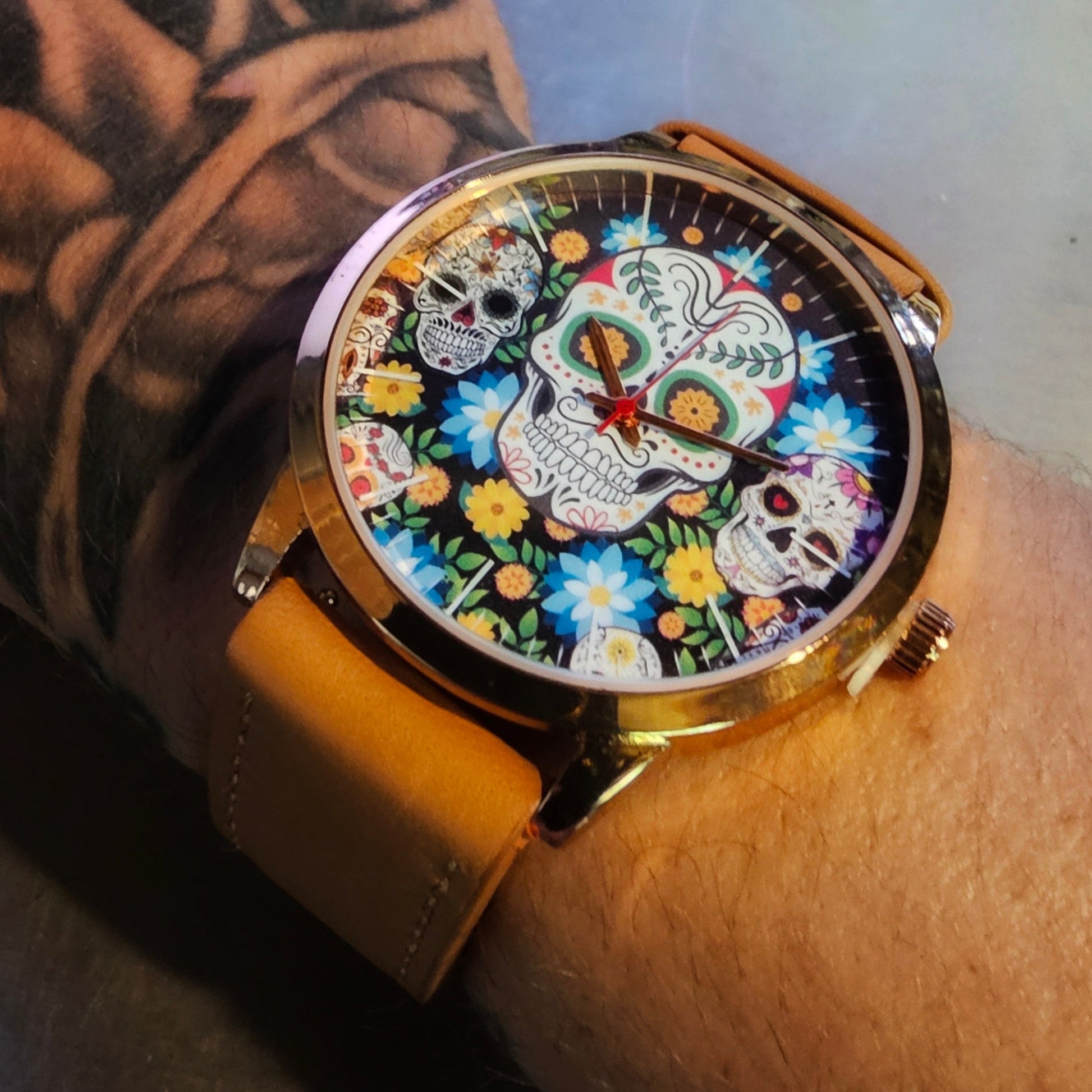 Elevate your style with our eye-catching Candy Skull Leather Band Wrist Watch. This statement timepiece combines vibrant skull artwork with premium leather craftsmanship for a bold, unique accessory that turns heads. Perfect for expressing your individuality while keeping track of time with precision. A must-have addition to any alternative fashion collection.
