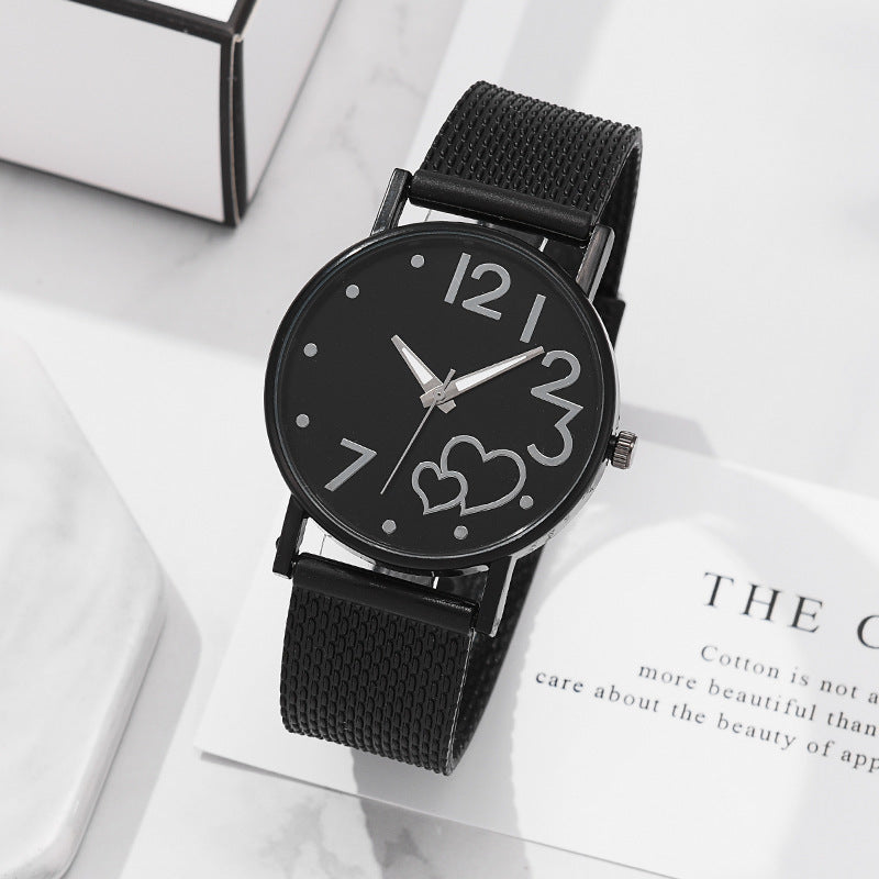 Casual Solid Colour Woman's Buckle Quartz Heart Wrist Watch