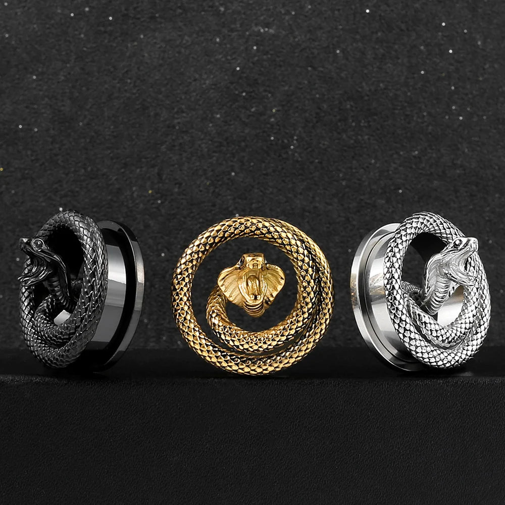 Introducing Cobra Stainless Steel Ear Plug Tunnels. Made with high-quality stainless steel, these tunnels are a stylish and durable choice for your ear piercings. The sleek design adds a touch of edge to any look. Upgrade your jewelry collection with these versatile and long-lasting tunnels.