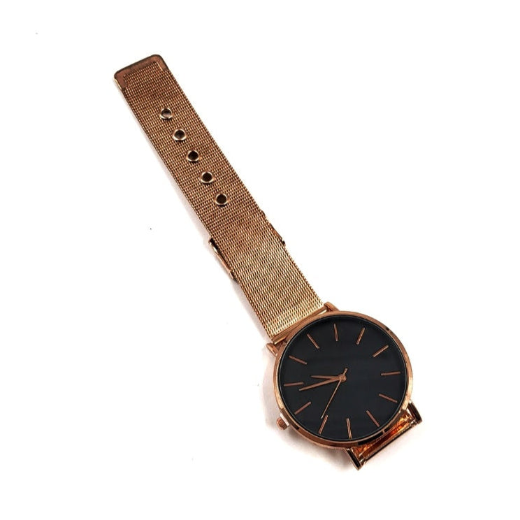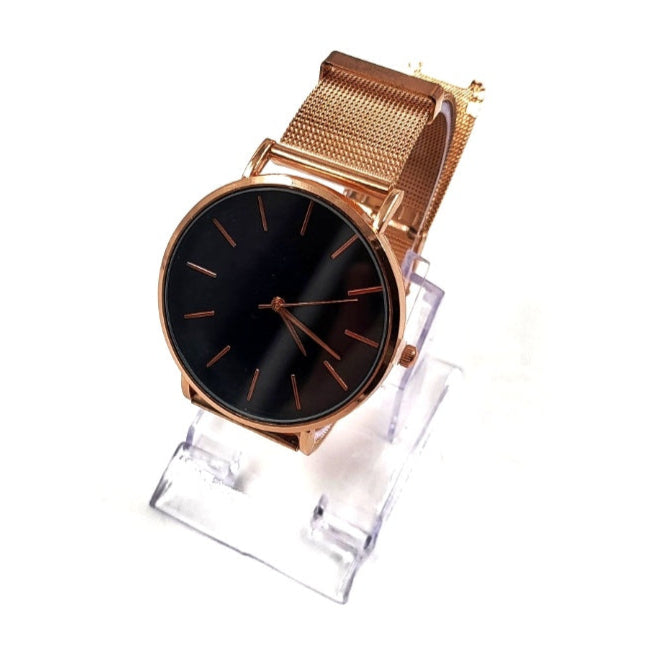 Elevate your style with our Rose Gold Classic Wrist Watch. The sleek metal chain band adds a touch of luxury, while the rose gold color exudes elegance. Stay on time and on trend with this must-have accessory.