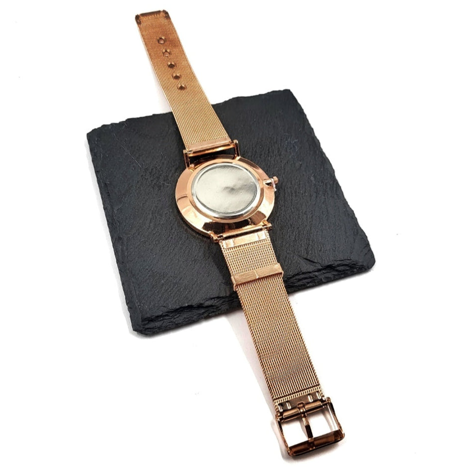 Rose Gold Classic Wrist Watch With Metal Chain Band Wrist Watch