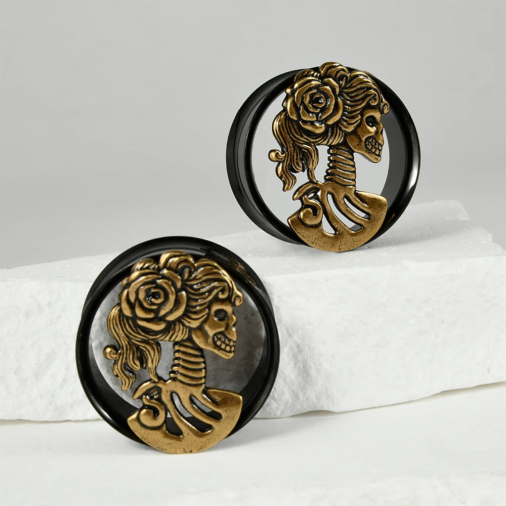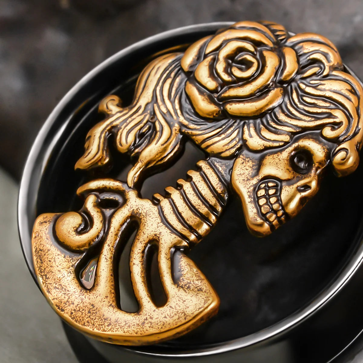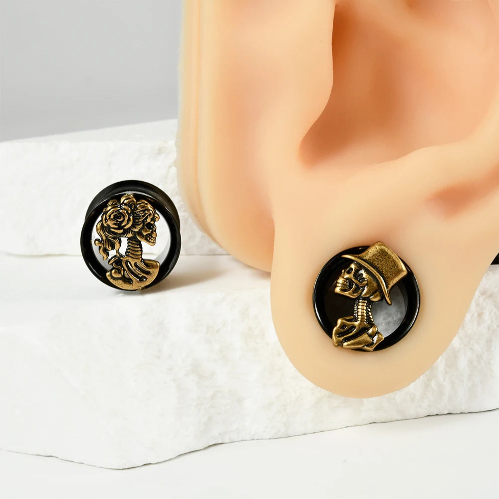 Skull Bride & Groom Stainless Steel Ear Tunnel Plug