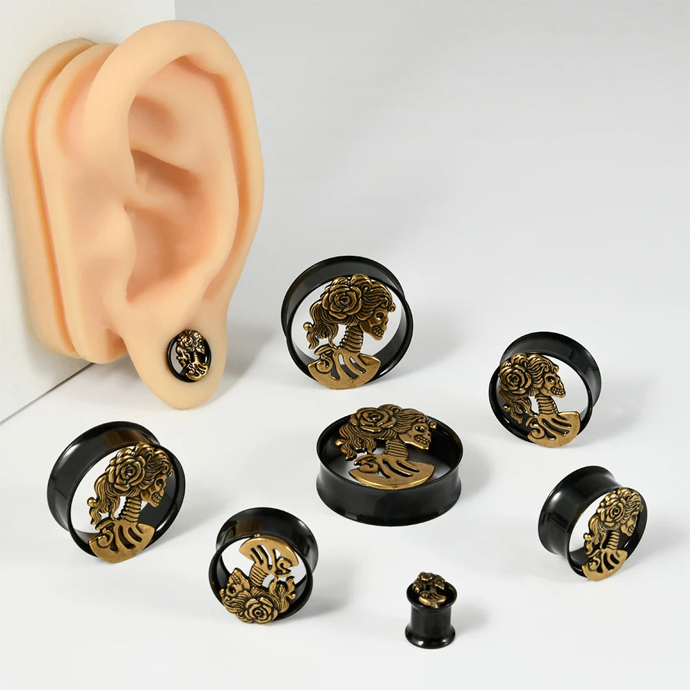 Transform your style with our Skull Bride & Groom Ear Tunnel Plug! Made of durable stainless steel, these plugs are embellished with a unique skull design which adds a touch of edginess to any look. Perfect for anyone who loves to stand out and make a statement.