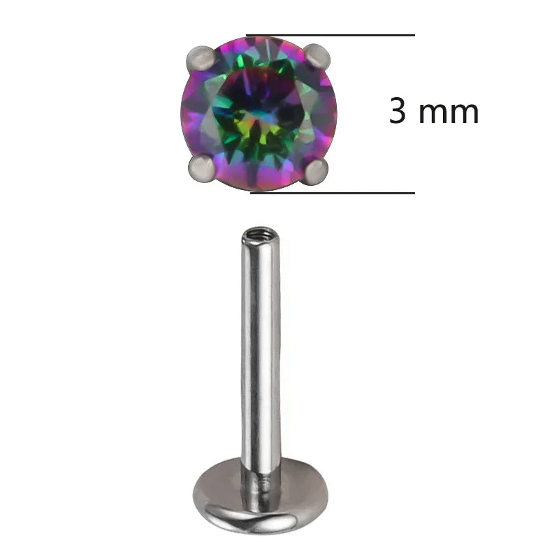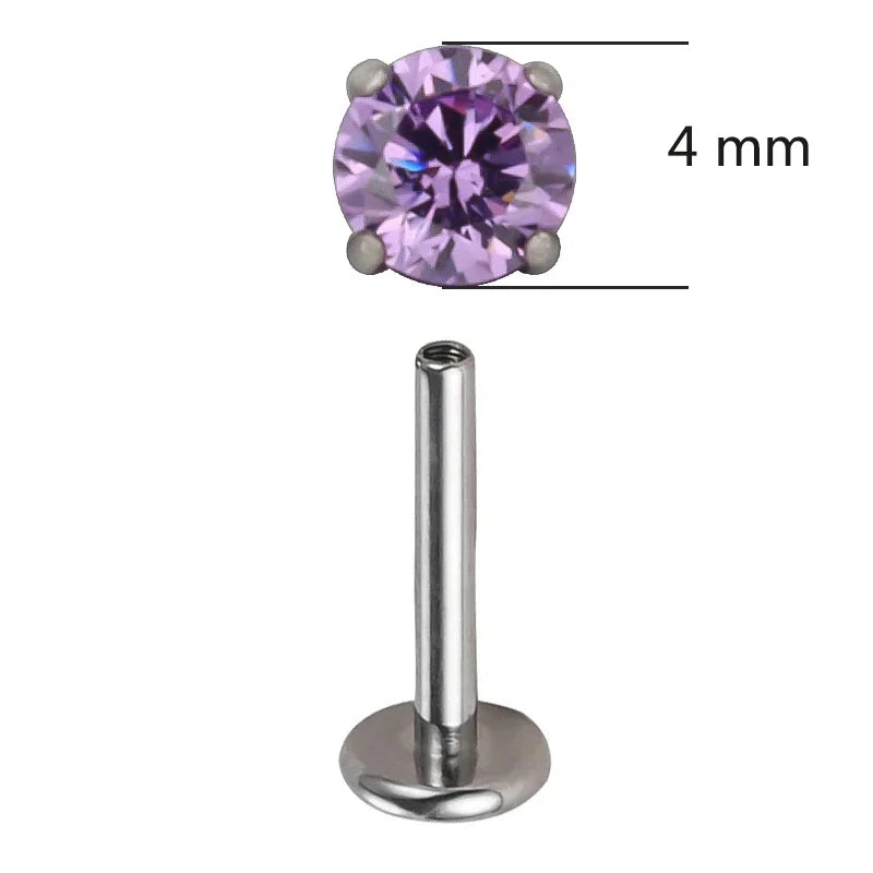 Threaded Titanium G23 Circular CZ Top Labret Stud